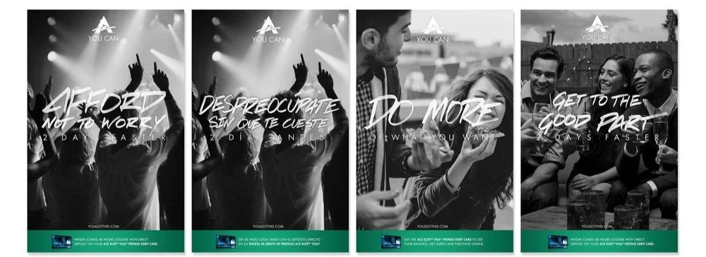 Won ACE Cash Express' first ever advertising agency of record & executed 2 of the 3 concepts we presented because they couldn't decide on just one.